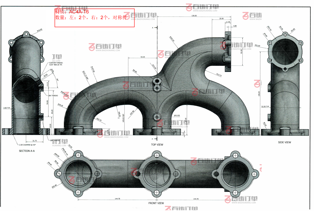 铸造工艺: 重力浇铸铸造,低压铸造