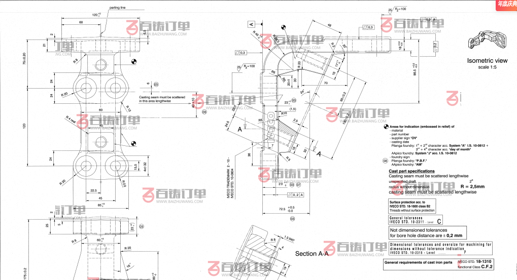 铸造工艺: 粘土砂铸造,垂直造型线