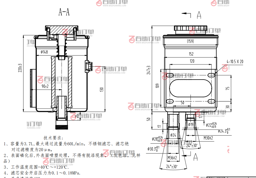 工艺要求:水玻璃砂铸造,消失模铸造