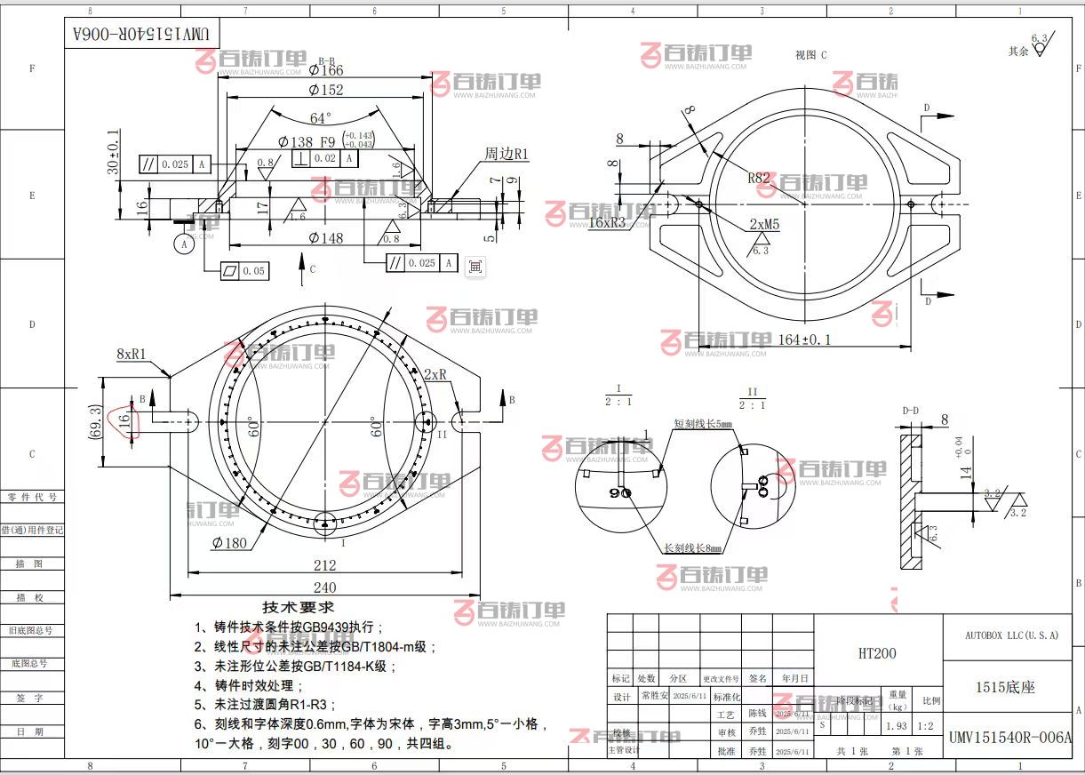 温馨提示:本页展现的订单信息均由采购企业自行提供,其真实性、准确性及合法性由采购企业负责。百铸网仅为用户提供一个铸件信息的第三方平台,不介入采购企业和供应企业的交易过程。在接单过程中,请双方签订具有法律效益合同以保护自身利益,双方交易出现纠纷,可通过司法途径解决问题。