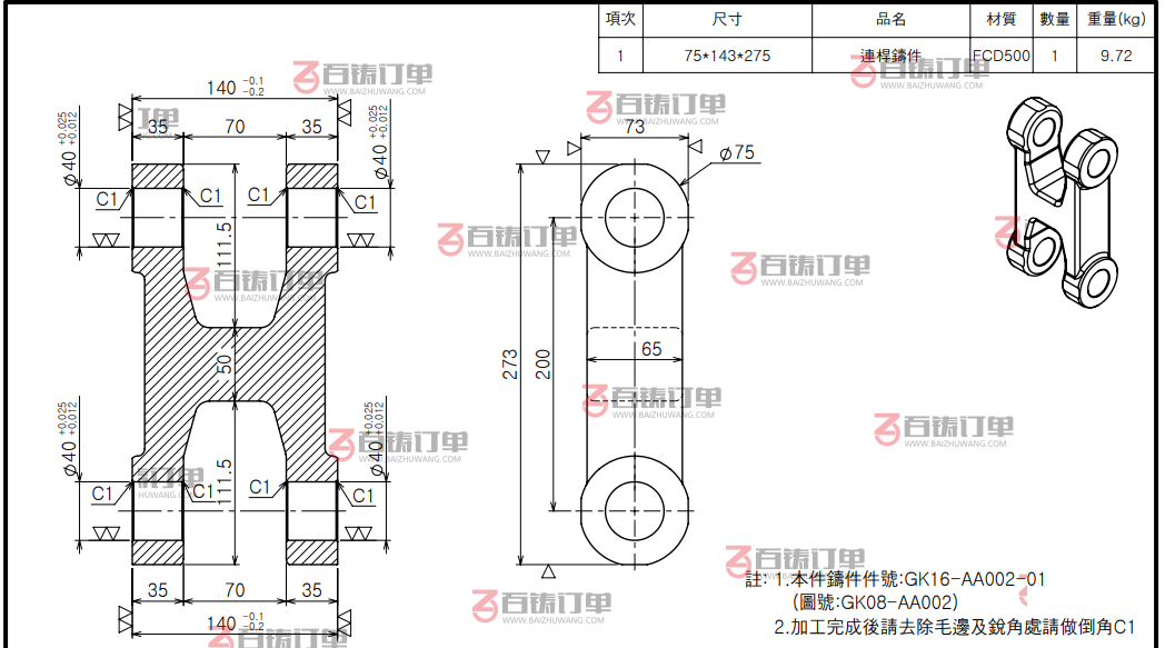 采购数量:滚轮座440个去毛刺毛边, 连杆144个精车交货
