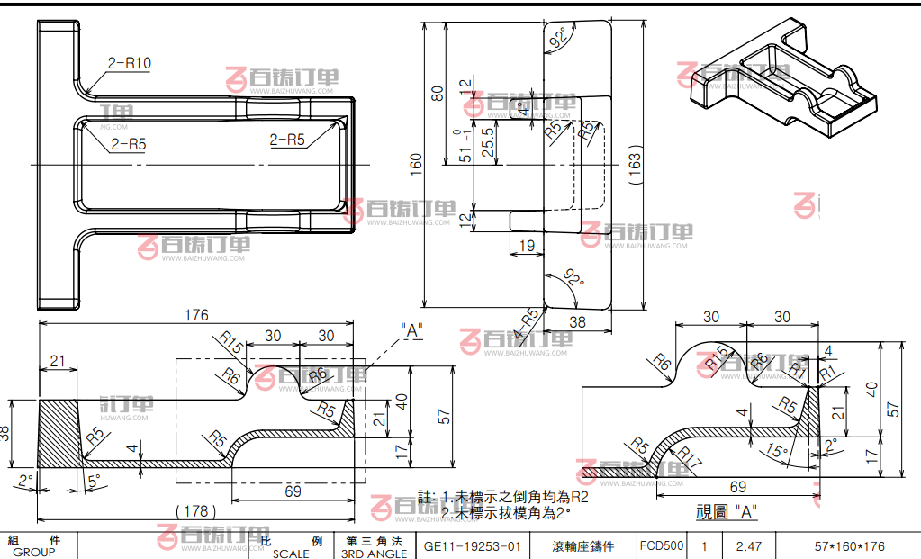 工艺要求:粘土砂铸造,覆膜砂铸造