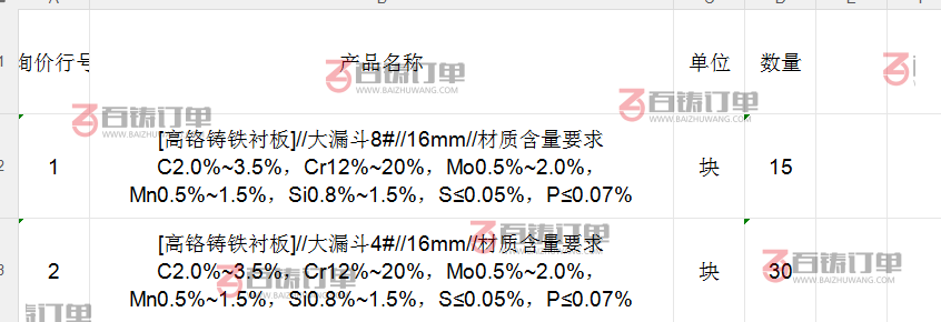 温馨提示:本页展现的订单信息均由采购企业自行提供,其真实性、准确性及合法性由采购企业负责。百铸网仅为用户提供一个铸件信息的第三方平台,不介入采购企业和供应企业的交易过程。在接单过程中,请双方签订具有法律效益合同以保护自身利益,双方交易出现纠纷,可通过司法途径解决问题。