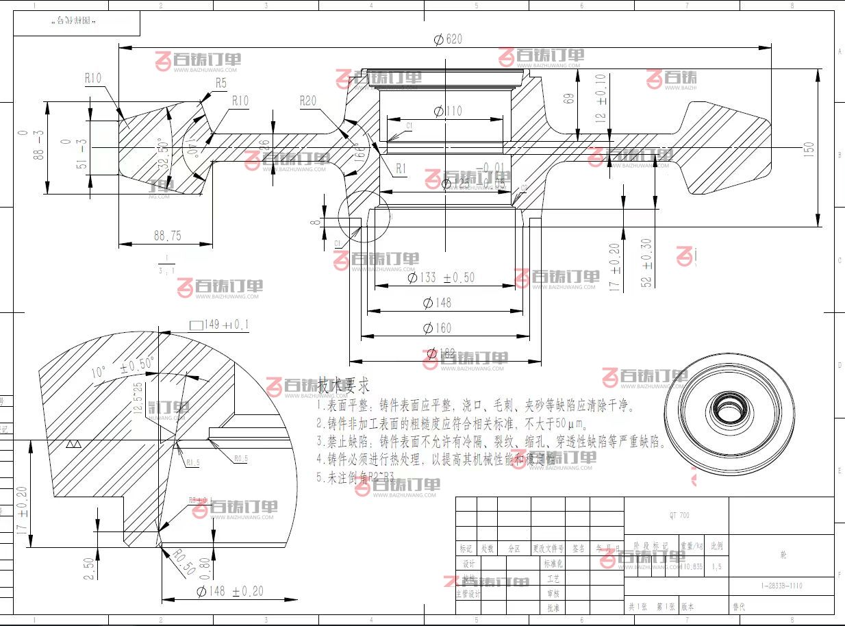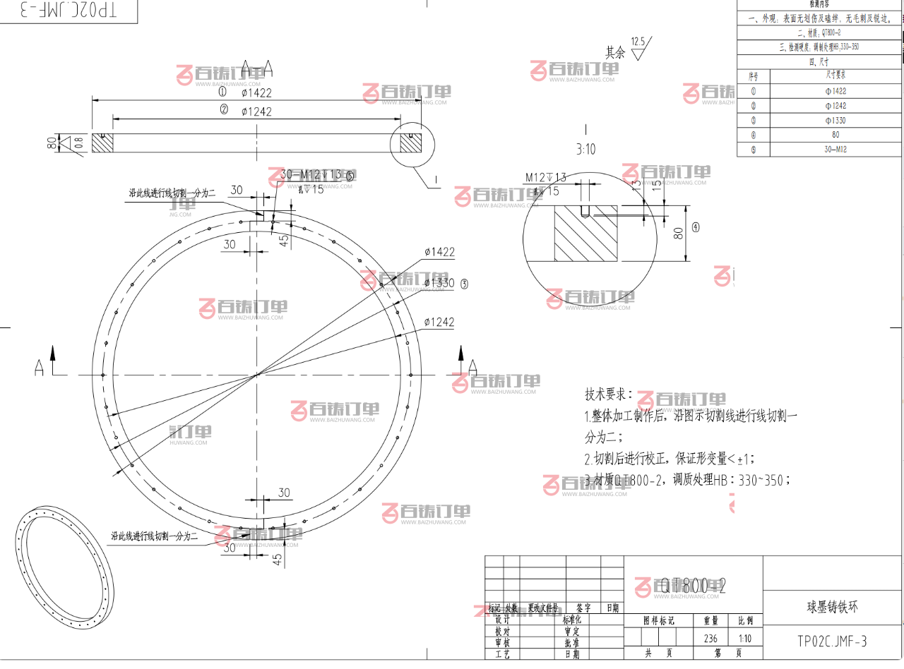 材质要求:球墨铸铁 QT400-15