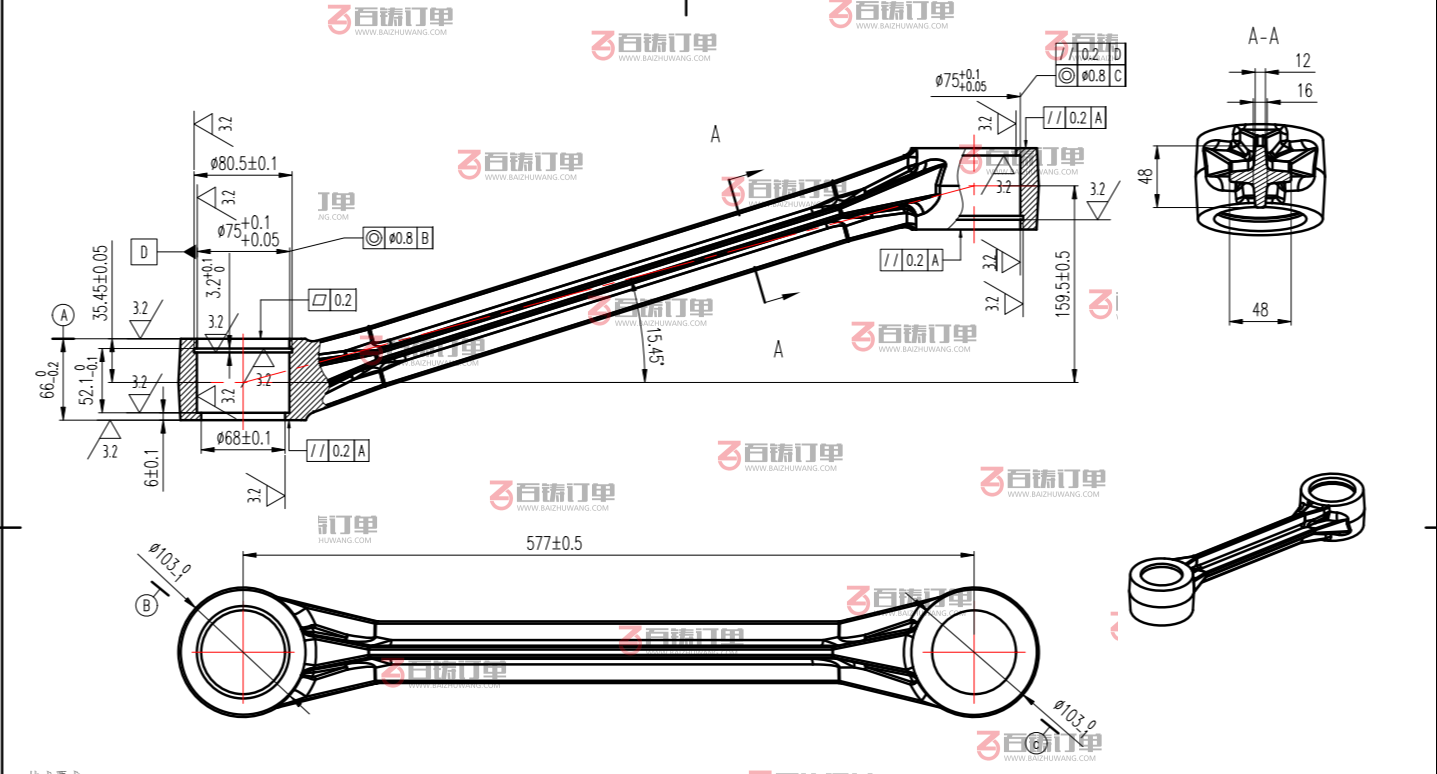 材质要求:铝合金 6082-T6