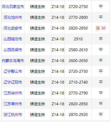 7月16日华南铸造 生铁价格涨20,Z18广西2790,高州2830,阳江2830,现金含税。(单位:元/吨)