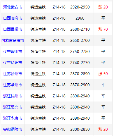 7月22日华北地区铸造 生铁价格个别上调,武安2920-2950元/吨,临汾2960元/吨。