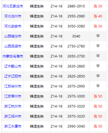 7月28日华北地区铸造 生铁价格个别涨20,武安3050-3080元/吨,临汾3040元/吨。