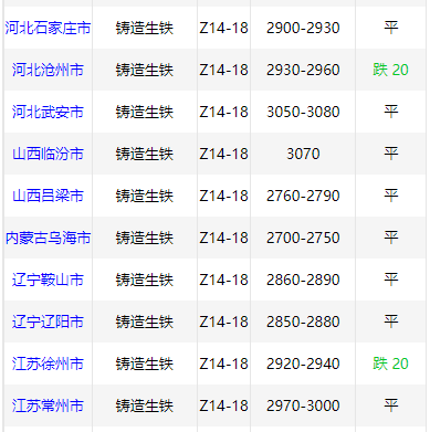 8月5日华北地区铸造 生铁价格个别下调,武安3050-3080元/吨,临汾3070元/吨。
