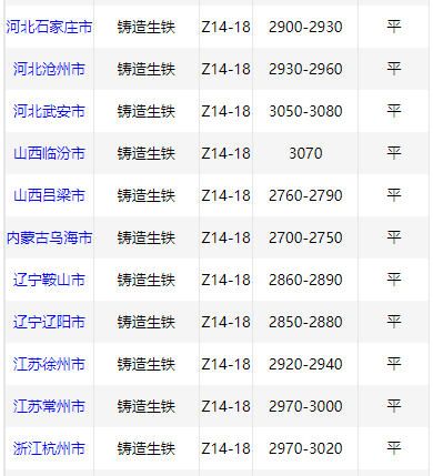8月6日华南铸造 生铁价格稳,Z18广西2920,高州2960,阳江2960,现金含税。(单位:元/吨)