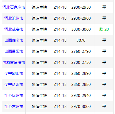 8月7日华南铸造 生铁价格稳,Z18广西2920,高州2960,阳江2960,现金含税。(单位:元/吨)