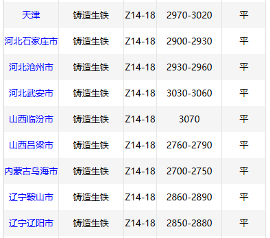 8月18日华中市场铸造 生铁价格稳,林州2930,黄石2900-2930,郴州2950,现款含税。(元/吨)