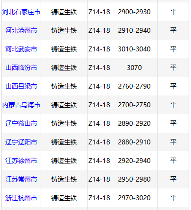 8月25日华北地区铸造 生铁价格稳,武安3010-3040元/吨,临汾3070元/吨。