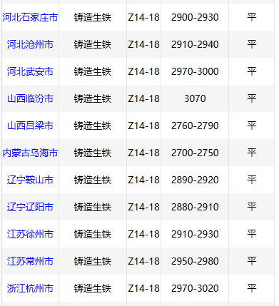 9月2日华南铸造 生铁价格稳,Z18广西2920,高州2960,阳江2960,现金含税。(单位:元/吨)