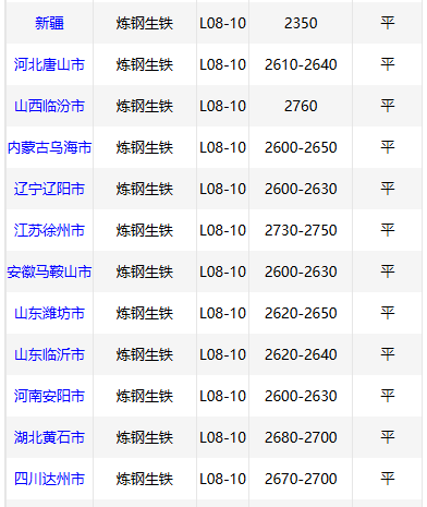 9月12日华南地区炼钢 生铁价格稳,广东地区L8-L10报2600元/吨,现款含税。