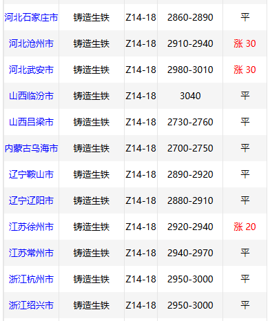 9月16日华北地区铸造 生铁价格个别调整,武安2980-3010元/吨,临汾3040元/吨。