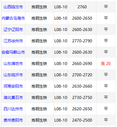 9月25日东北铸造 生铁报价稳,鞍山2890-2920、辽阳2880-2910元/吨,现款含税。