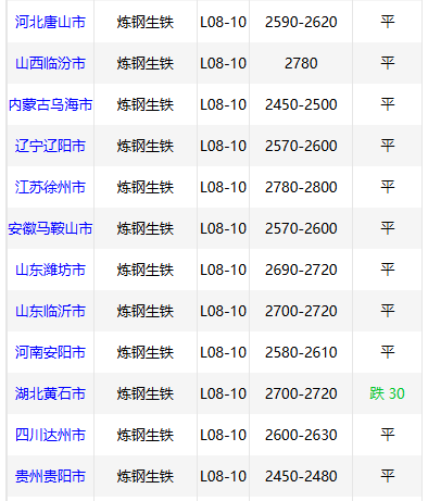11月25日华北地区铸造 生铁价格稳,武安3070-3100元/吨,临汾3070元/吨。