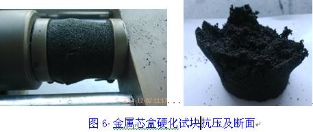 从图4可以看出,同样在5℃环境下,树脂、固化剂加入比例一定时:①木模造型起模时间约为2~3h即可将铸型从模具上取出(1.5MPa),铸型硬化达到足够强度,不会变形(见图5);金属模需要5h才可取出,过早取出内部未完全硬化,会产生挤压变形(见图6),终强度基本相同,在3MPa左右。②单纯提高固化剂酸度值不能显著提高硬化速度,缩短起模时间。