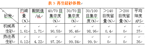 本文以公司现场使用的呋喃树脂和苯磺酸固化剂、再生硅砂为试验材料,各原料参数见表1~表3.