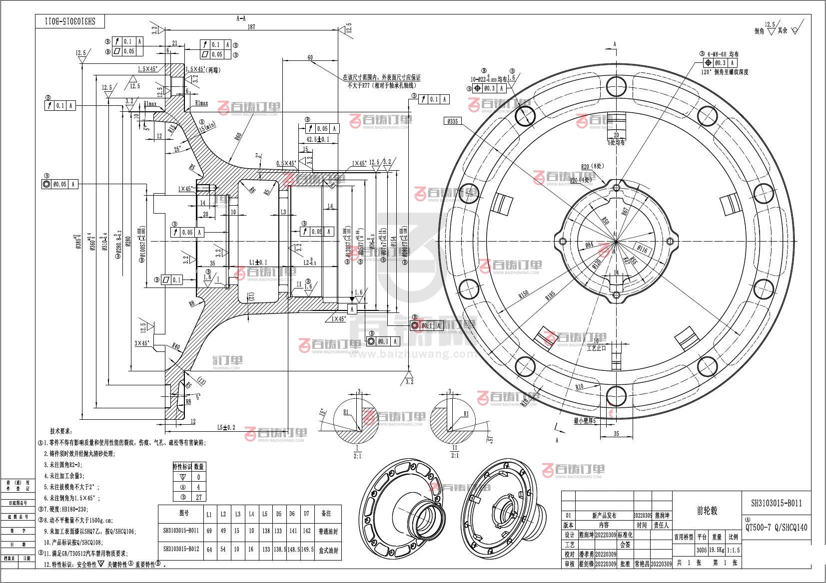 材质要求:球墨铸铁 QT500-7