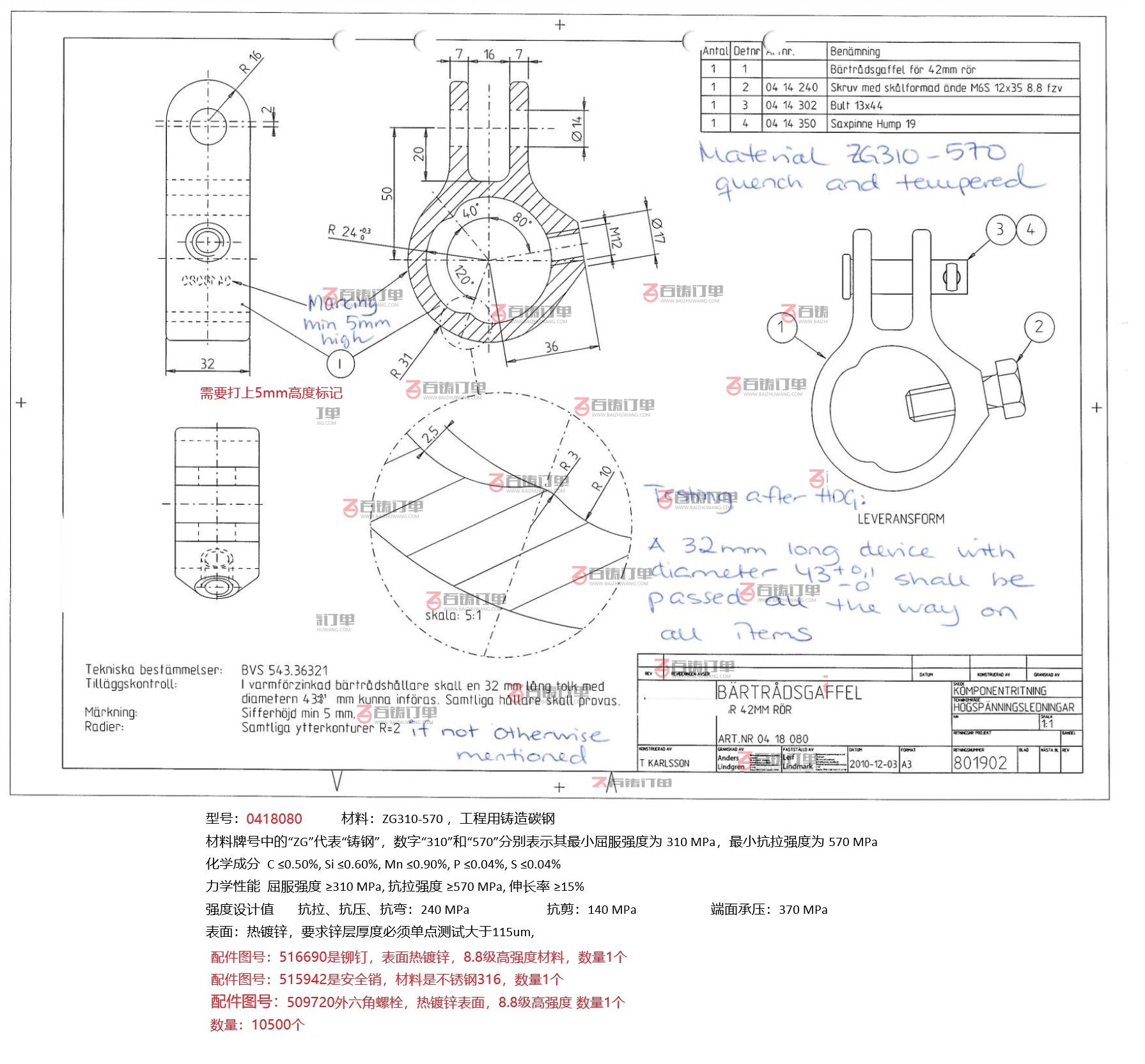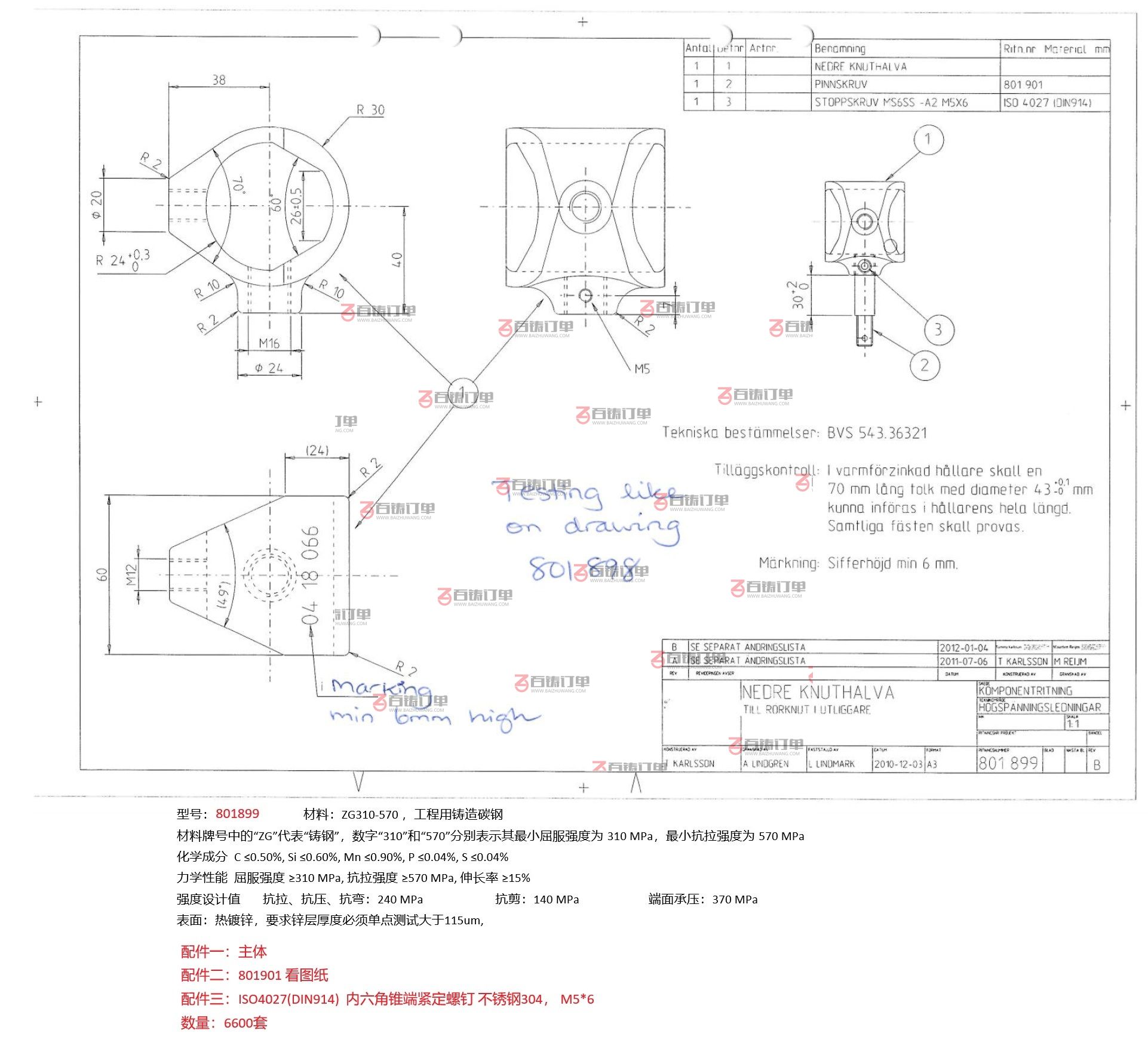 材质要求:碳钢 ZG230-570材质