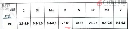 材质要求:高铬铸铁