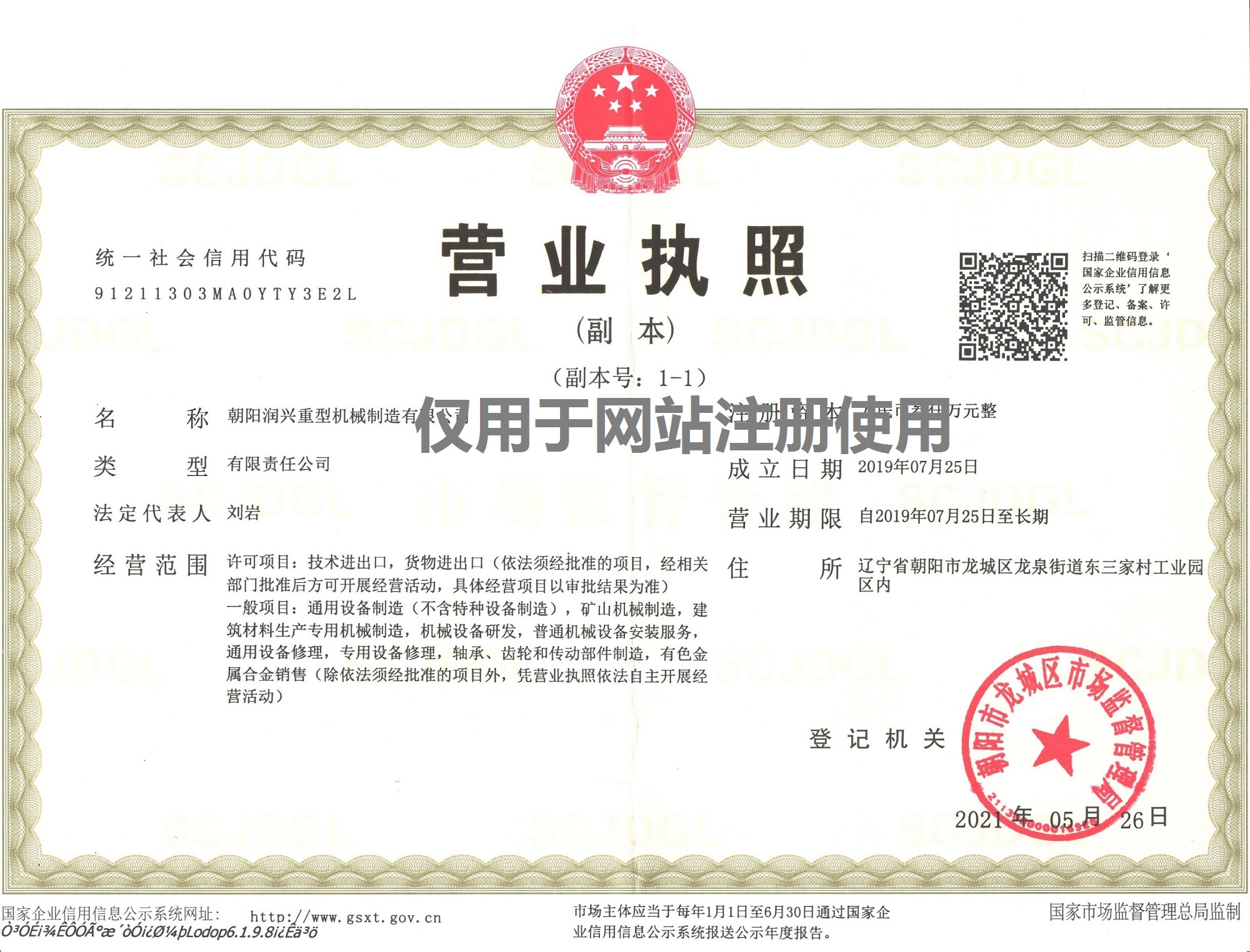 | 企业名称: | 朝阳润兴重型机械制造有限公司 | 详细地址: | 辽宁省朝阳市龙城区东三家工业园区 |