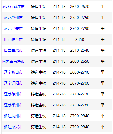 7月9日华南铸造 生铁价格稳,Z18广西2720,高州2760,阳江2760,现金含税。(单位:元/吨)
