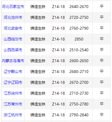 7月10日华南铸造 生铁价格稳,Z18广西2720,高州2760,阳江2760,现金含税。(单位:元/吨)